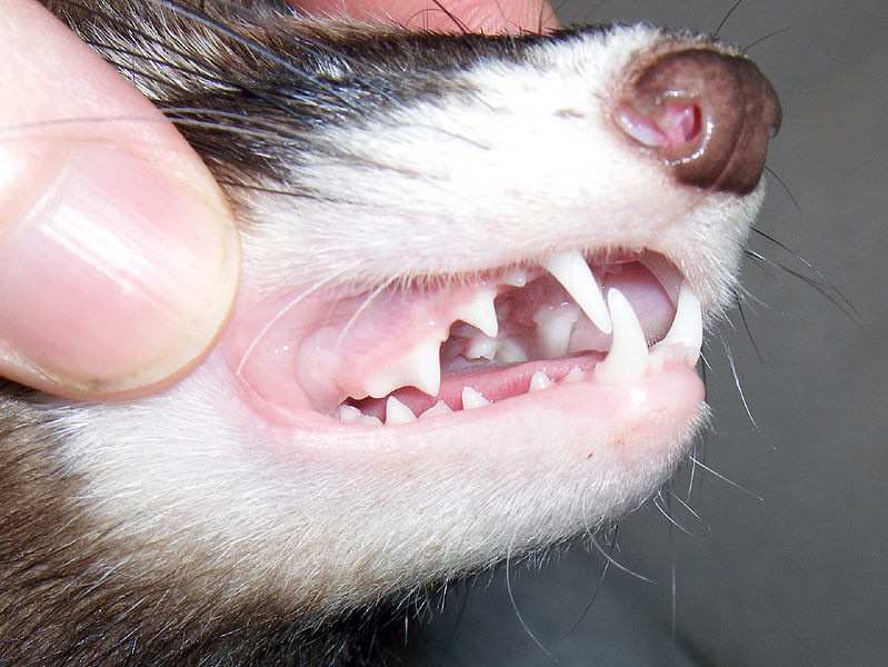 Heel veel fretten hebben last van gebroken hoektanden; vroeger zag je dit veel bij fretteer fretten.